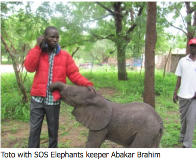 The baby elephant was found wandering the area after the June 24 attack after his mother had likely been killed. SOS Elephants staff carried Toto to their camp, examined the small pachyderm and fed him milk formula. The calf was uninjured but traumatized by the slaying and very weak. Over the next several days Toto roamed the bush under the watchful eye of two keepers, who slept with him and fed him milk formula every three hours. They let Toto wander because experience has shown baby elephants are less depressed when they maintain a normal life.