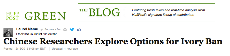 Huffington Post: Chinese Researchers Explore Options for Ivory Ban