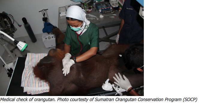 Medical check of orangutan. Photo courtesty of Sumatran Orangutan Conservation Program (SOCP)