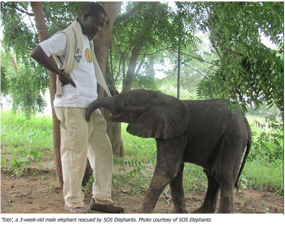 'Toto', a 3-week-old male elephant rescued by SOS Elephants. Photo courtesy of SOS Elephants
