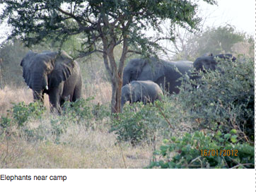 Over the last two weeks, elephants in this area have crossed the River Chari near the camp several times for hours searching for a safe place. This is unusual behavior for the elephants. Normally at this time of year, they avoid the rain and mud by hiding in the small forests around the River Chari and do not come out again until October.