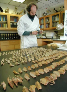 The Genetics section analyzes DNA to identify both species and individuals. It uses modern molecular genetics techniques to identify plant and animal remains and products and determine their taxonomic family, species, and sub-species, as well as gender, parentage, or population (geographic) origin.